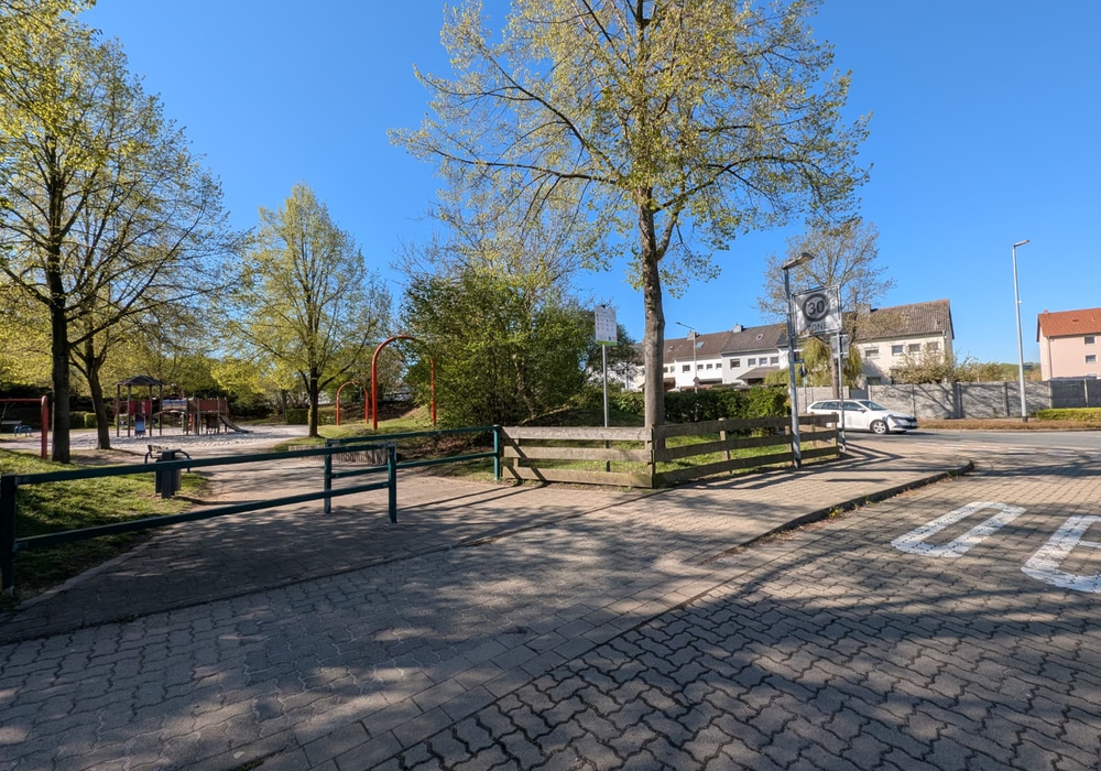 Der Haupteingang zum Spielplatz liegt in der Straße Im Blumengarten". Dort herrscht bereits Tempo 30. Foto: Werner Heise