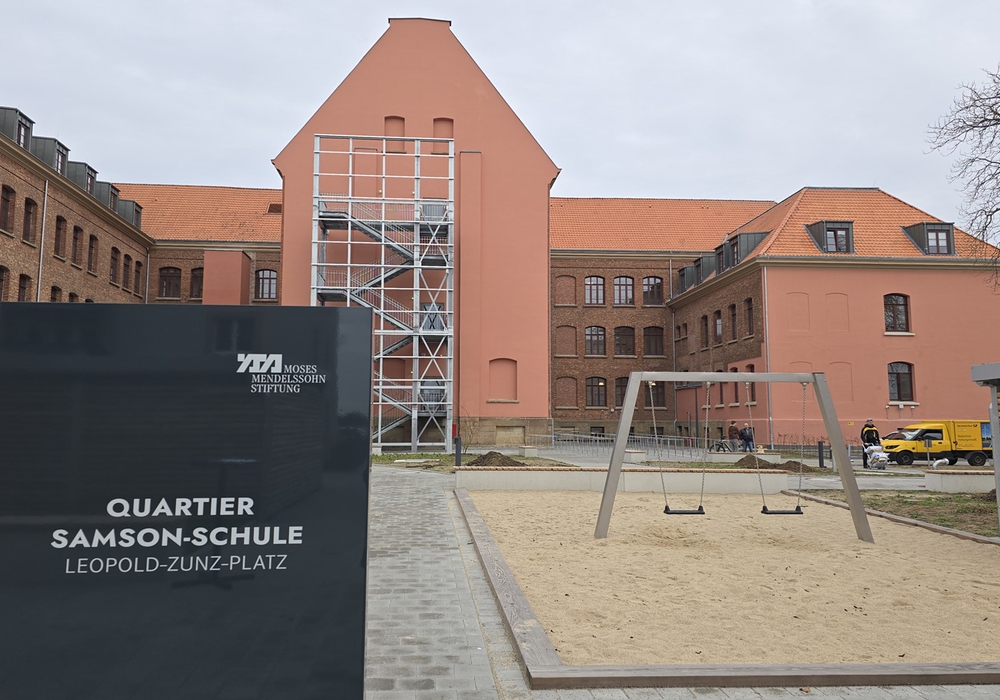 Der neue Leopold-Zunz-Platz bilde das Zentrum eines zukunftsweisenden Quartiers. Das denkmalgeschützte Gebäude der ehemaligen Schule – vormals Neuer Weg 50, jetzt Leopold-Zunz-Platz 1 – werde als Lern- und Gedenkort genutzt. Gleichzeitig beherbergt es ein Wohnheim für 155 Studenten und Auszubildende aus aller Welt.