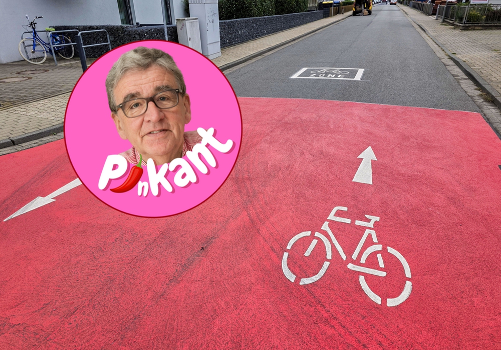 Um nur ein Thema kurz zu streifen, die Schöpfung der Fahrradzone, erinnerte dann schon an manchen Schelmenstreich einschlägiger TV–Satire! Schön wie immer, in dem Zusammenhang die wunderbaren Kommentare in den sogenannten „Sozialen Netzwerken“! Ein kleines Schlaglicht dazu: Mit auswärtigen Freunden befuhr ich, natürlich im PKW, das Quartier Schützenstraße. Im Hinblick auf die penetrante Rotfärbung der Fahrbahnflächen erklärte ich unseren beeindruckten Freunden, dass hier die Entscheidungsträger couragiert, neben der Bevorzugung des Radverkehrs, „Kunst am Bau“ - wohlbemerkt Tiefbau - geschaffen haben und die Stadt dafür erhebliche Fördersummen erhalten habe.