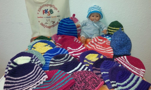 Drei fleißige Strickfeen werten Babybegrüßungspakete auf