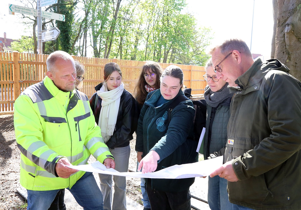 Vom Fortschritt der Arbeiten überzeugte sich jetzt auch Gartendenkmalpflegerin Janine Teßmer (Mitte) vom Niedersächsischen Landesamt für Denkmalpflege. Das Landesamt habe sich ausdrücklich für die Wiederherstellung der Zaunanlage ausgesprochen. Die historische Parkanlage, ein Garten-Einzeldenkmal nach dem Niedersächsischen Denkmalschutzgesetz, zeichne sich durch ihre filigrane und aufwendige Gestaltung aus. Intensive Nutzung in der Vergangenheit führte zu Schäden an Wegen, Grünflächen und architektonischen Elementen.