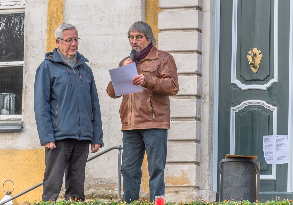 Unter großem Beifall der Weihnachtsmarktbesucher nahm Prof. Wilhelms die Urkunde und die Ehrennadel entgegen. „Für dieses lange Engagement hat er sie wirklich verdient“, so eine Einwohnerin.
