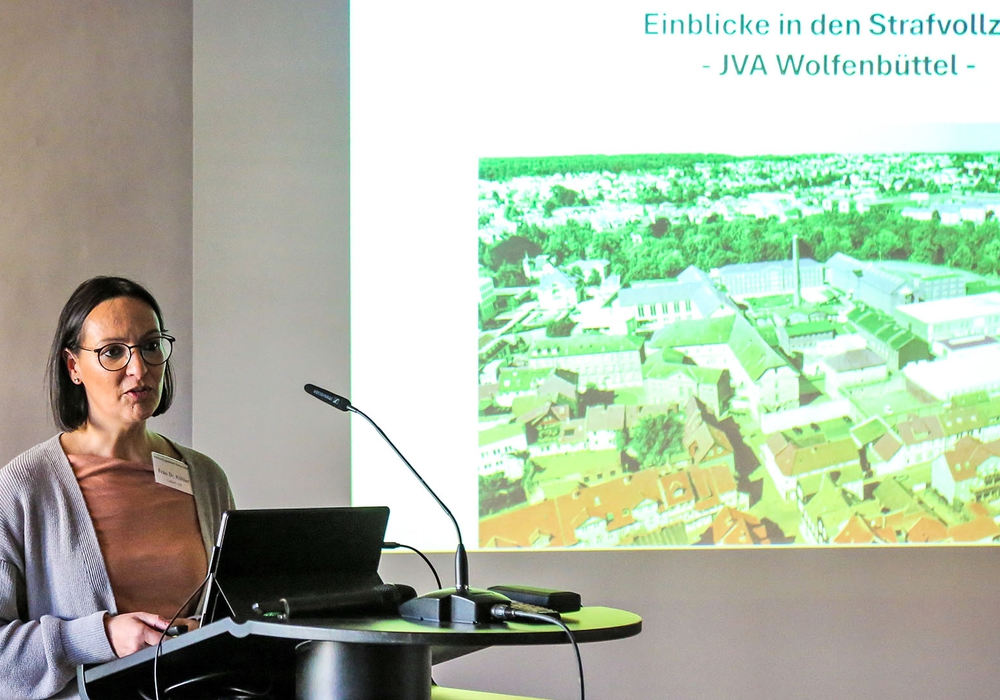 Dr. Tanja Köhler, Leiterin der Justizvollzugsanstalt Wolfenbüttel, gab Einblicke in die Arbeit des Strafvollzugs. Die zentral gelegene JVA verfügt über 407 Haftplätze und ist von einer rund 640 Meter langen Mauer umgeben. Neben der sicheren Unterbringung der Gefangenen steht insbesondere deren Resozialisierung im Fokus.
