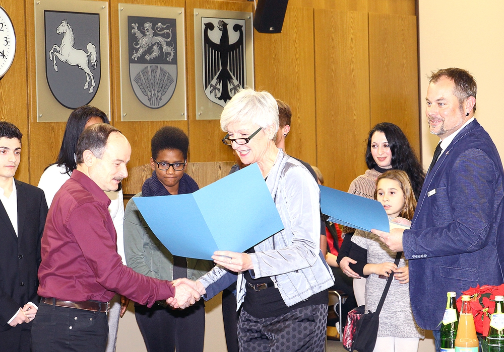 Steinbrügge zitierte Arawat Sabejew, einen in Kasachstan geborenen Ringer, der später Deutscher wurde: Deutschland ist kein Traumland, aber ein Land, wo man seine Träume erfüllen kann. "Nutzen Sie das, bringen Sie sich ein und erfüllen Sie sich ihre Träume", ermunterte die Landrätin.