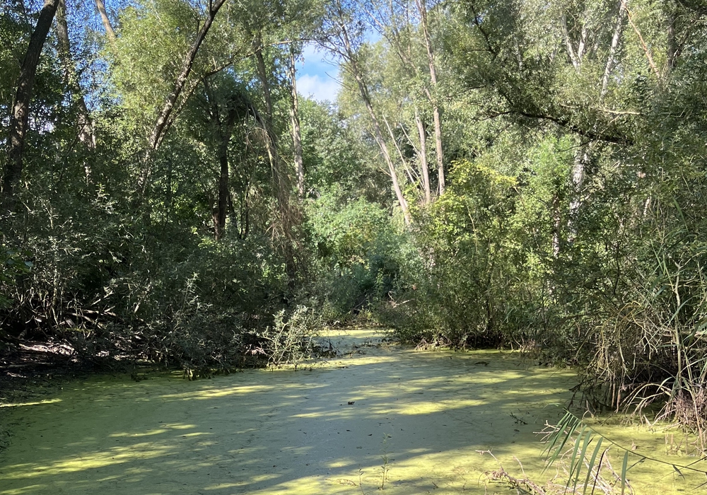 Der Teich leide an übermäßiger Beschattung, Laubeintrag und einer geschlossenen Wasserlinsendecke. Diese Umstände führen dazu, dass das Wasser hier in weiten Teilen sauerstoffarm und lebensfeindlich ist. Eine Elektrobefischung und Vermessung des großen Teiches in diesem Frühjahr konnte keinen Fischbesatz, aber eine dicke Faulschlammauflage feststellen.