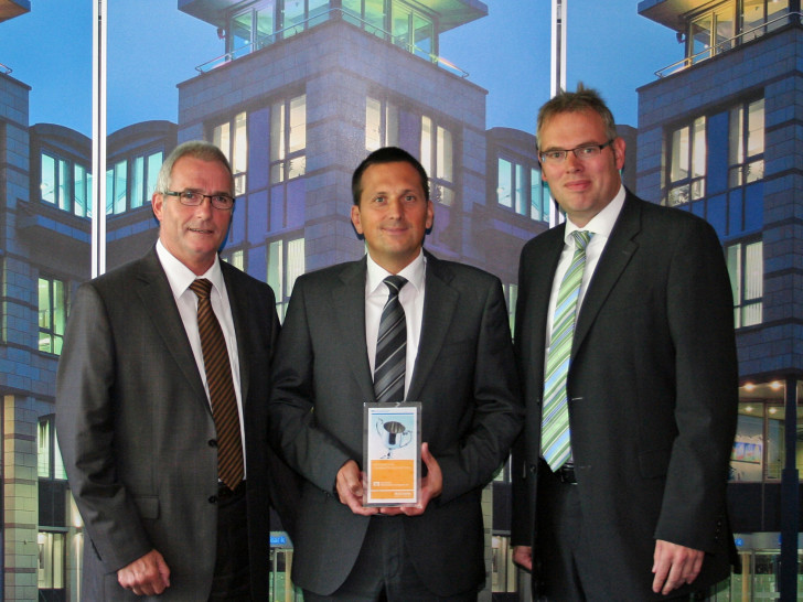 Wolfenbüttel. Die Volksbank Wolfenbüttel-Salzgitter wurde jetzt durch die DZ BANK AG (Deutsche Zentralgenossenschaftsbank) für den überdurchschnittlichen Einsatz von Fördermitteln im Jahr 2013 ausgezeichnet. Holger Scharnhorst von der DZ BANK AG überreichte für dieses herausragende Ergebnis eine Auszeichnung an den Sprecher des Bankvorstandes, Ernst Gruber, und an Karsten Tennert, Vertriebsleiter für das Firmenkundengeschäft. "Dieses hervorragende Ergebnis bestätigt die umfassende Beratungskompetenz der Volksbank sowohl im Privat- als auch im Firmenkundenkreditgeschäft!", so das einstimmige Fazit von Gruber, Tennert und Scharnhorst.