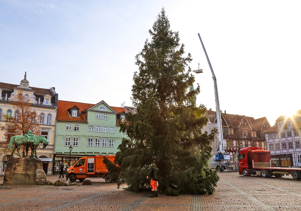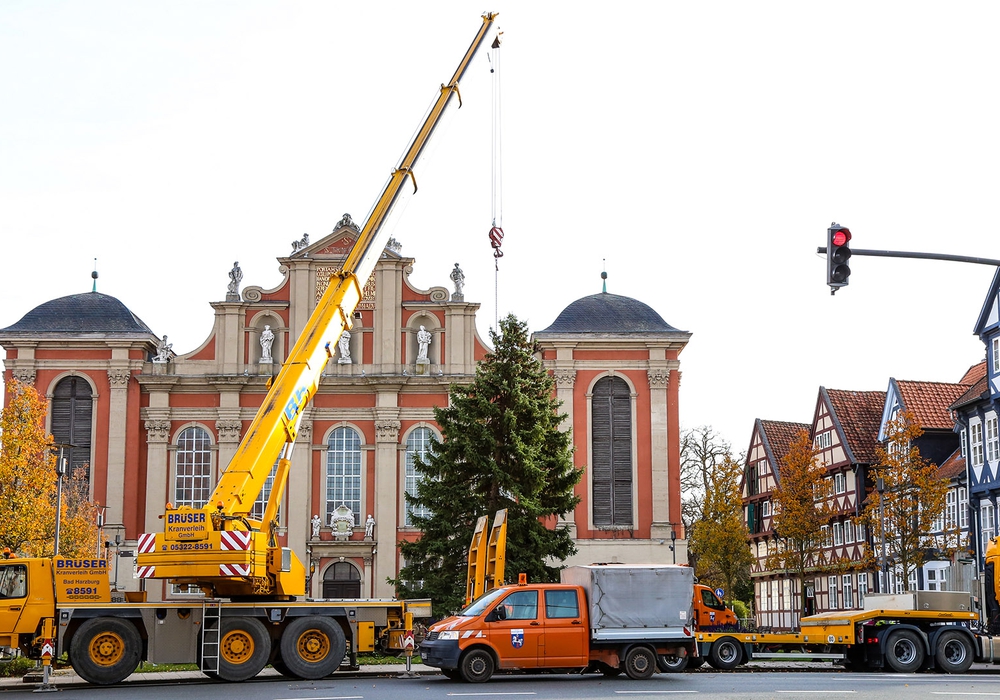 Einen Weihnachtsbaum findet man aber, ebenfalls seit Donnerstag, vor St. Trinitatis. Dieses stattliche Exemplar wurde in Wolfenbüttel selbst geschlagen.