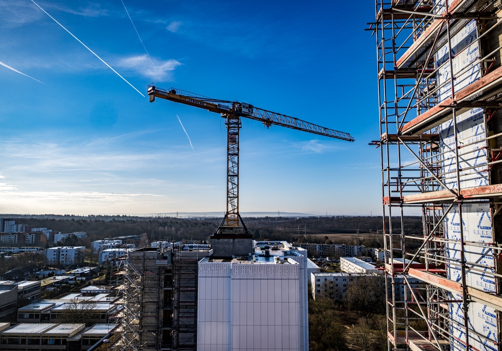 Wolfsburg. Die Skyline von Detmerode war über viele Monate geprägt von zwei weithin sichtbaren Turmdrehkränen auf den Hochhäusern des Großprojekts Don Camillo und Peppone. Nun ist ein bedeutender Fortschritt erreicht: Der Kran auf dem 13‑geschossigen Hochhaus Peppone wurde erfolgreich zurückgebaut. Das berichtet die Neuland Wohnungsgesellschaft mbH in einer Pressemeldung.