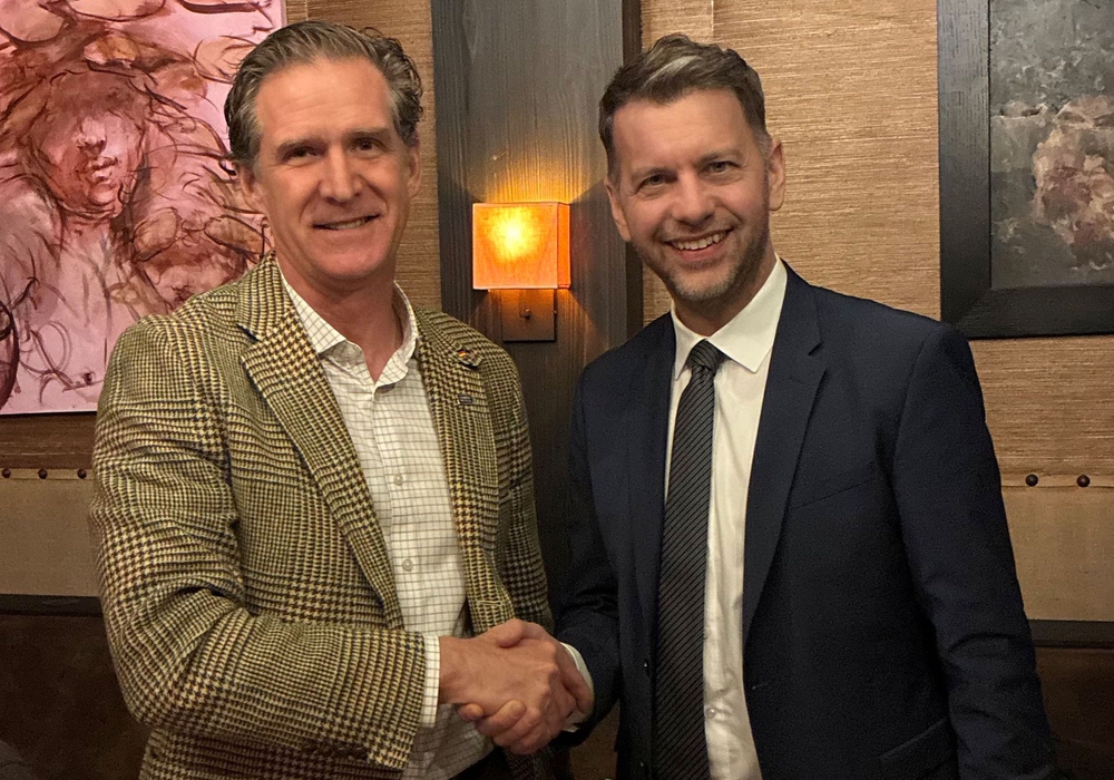 Tim Kelly, Bürgermeister von Chattanooga (links) und Dennis Weilmann unterzeichneten ein Memorandum, um die Zusammenarbeit zu würdigen und das gemeinsame Engagement für eine weiterhin vertrauensvolle und zukunftsorientierte Partnerschaft zu bekräftigen. Foto: Stadt Wolfsburg