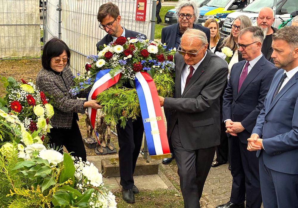 Ehrengäste der Gedenkveranstaltung waren unter anderem der Botschafter der Italienischen Republik S.E. Fabrizio Bucci, der frühere Präsident der Amicale Internationale KZ Neuengamme und Diplomat a. D. Jean-Michel Gaussot, der stellvertretende Botschafter der Republik Polen, Jakub Jan Wawrzyniak sowie Julien Acquatella, der ein Grußwort des Botschafters der Französischen Republik verlas.