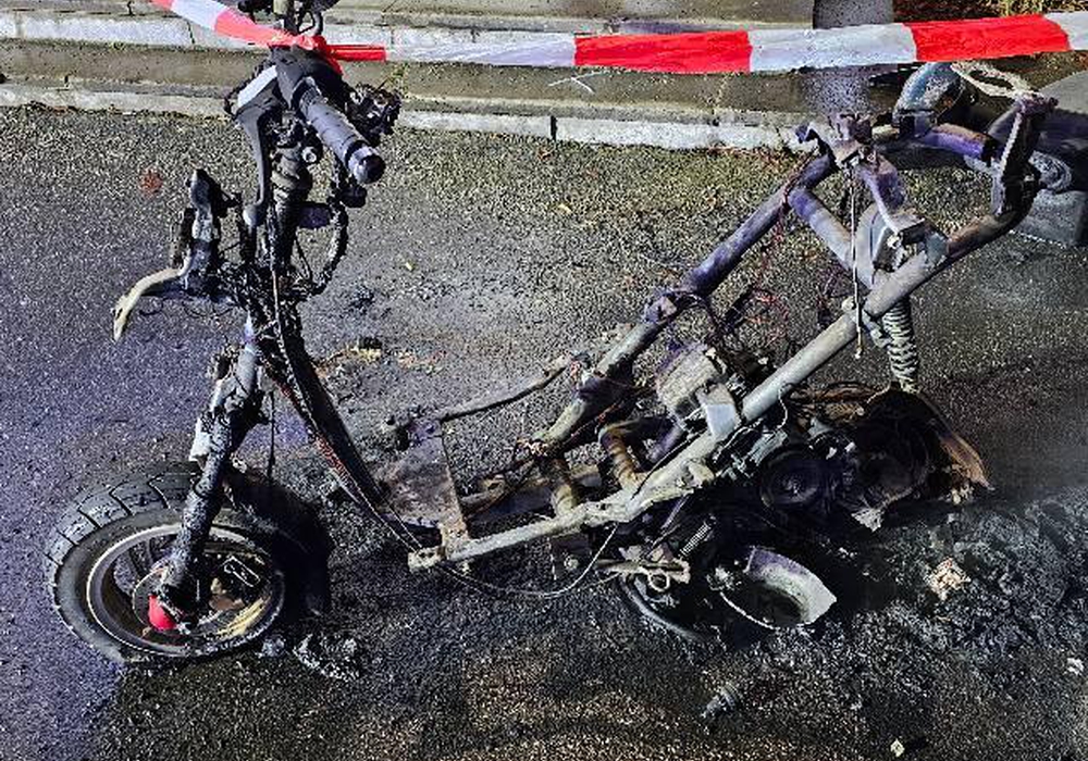 Zeugen verständigten um 20.27 Uhr die Feuerwehr, nachdem sie den brennenden Motorroller entdeckt hatten. Trotz der schnell eingeleiteten Löscharbeiten brannte das Zweirad vollständig aus.