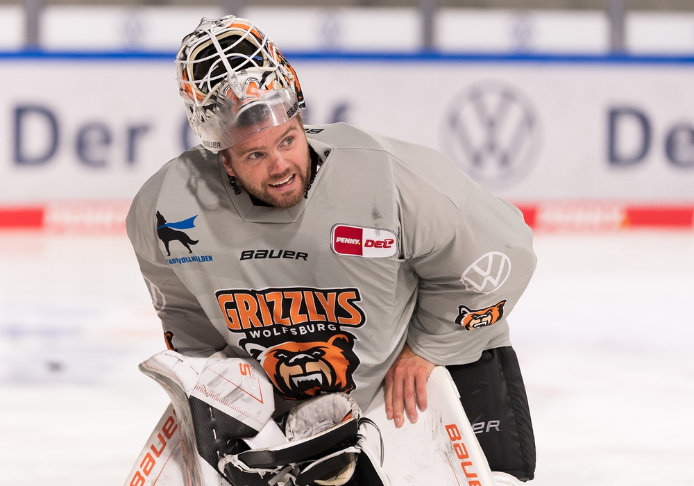 Goalie Chet Pickard hat seinen Vertrag verlängert. | Foto: Grizzlys Wolfsburg / City-Press GmbH