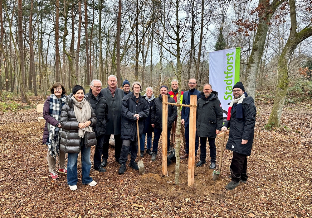 In der vergangenen Woche wurden nun im Beisein von Vertretern der Politik sowie Mitgliedern der Rotary Clubs fünf dieser Bäume als „lebende Skulpturen“ im Wolfsburger Stadtforst an ihrem endgültigen Standort gepflanzt. Auf einem eigens hergerichteten Ort (in der Nähe des Parkplatzes an der Kreuzung Maria-Merian-Straße und Werderstraße in der Wolfsburger Nordstadt) entstand zwischen Waldwegen ein neuer Verweilplatz mit zwei Sitzbänken und einem Findling, inklusive Gravur, die auf die Kooperation zwischen der Stadt, den Rotary Clubs und dem Kunstmuseum verweist sowie an das Recht auf Hoffnung erinnert – ein Ort, der Besucher künftig zum Innehalten inmitten des Waldes einlädt und die Zuversicht stiftende Bedeutung des Projekts dauerhaft sichtbar macht.