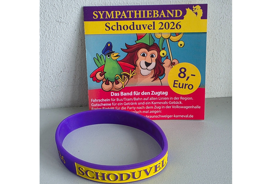 Das Schoduvel-Bändchen hält weitere Extras bereit, wie den freien Eintritt zur Zugparty ab 15.30 Uhr in der Volkswagenhalle Braunschweig und ein Freigetränk mit dem beiliegenden Gutscheinheft. Das Bändchen kostet acht Euro und ist in folgenden Verkaufsstellen erhältlich: